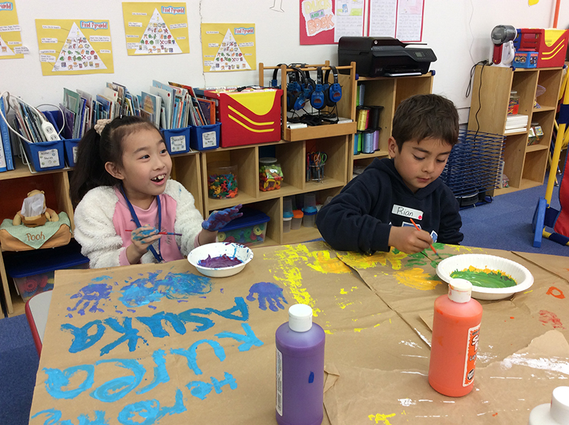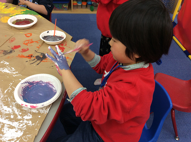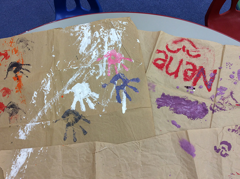 After painting the game sticks, everyone got to do free painting on the brown paper! Everyone’s paper looks so colorful!
